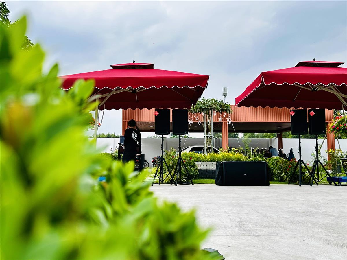 - Hệ thống âm thanh phải đủ công suất, phủ đều toàn bộ khu sân vườn.