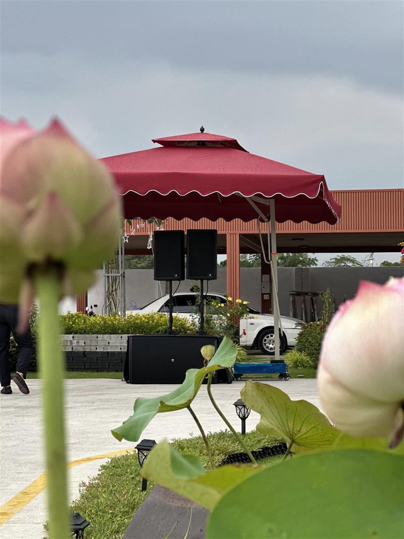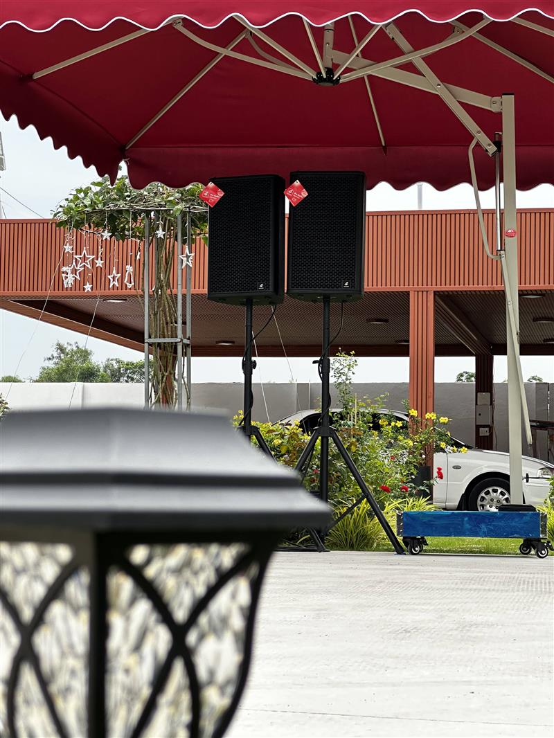 Với 4 chiếc loa 4Acoustic V12, toàn bộ khu sân vườn được phủ âm đều, không bị hụt tiếng ở các góc.