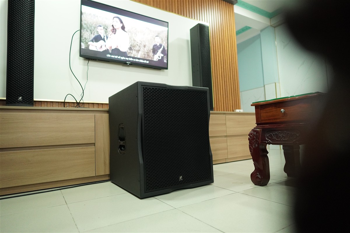 Để tăng cường dải trầm cho hệ thống karaoke, SIS ProAV đã sử dụng loa sub 4Acoustic PCS-118BS. Đây là dòng subwoofer chuyên dụng cho karaoke với khả năng tái tạo âm trầm mạnh mẽ và sâu.