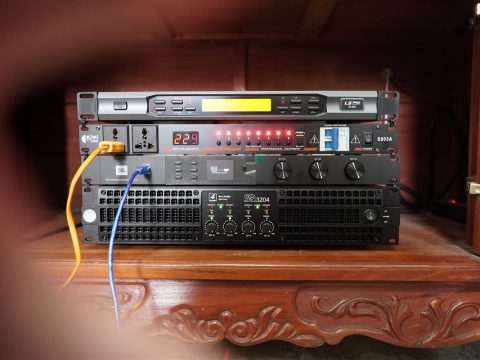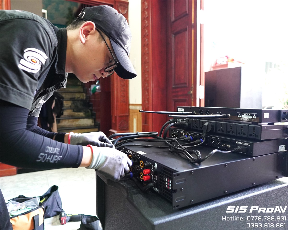 Amplifier đóng vai trò khuếch đại tín hiệu âm thanh từ vang số đến loa. Trong dự án này, SIS ProAV sử dụng amplifier 4Acoustic SQ3204 – một thiết bị khuếch đại mạnh mẽ và ổn định.