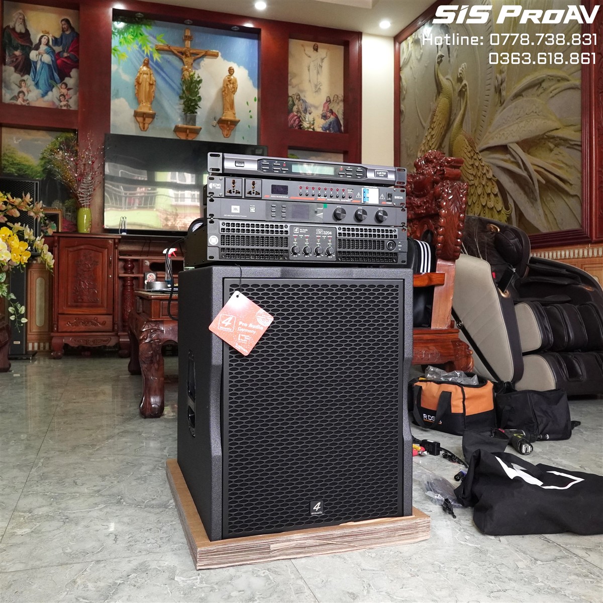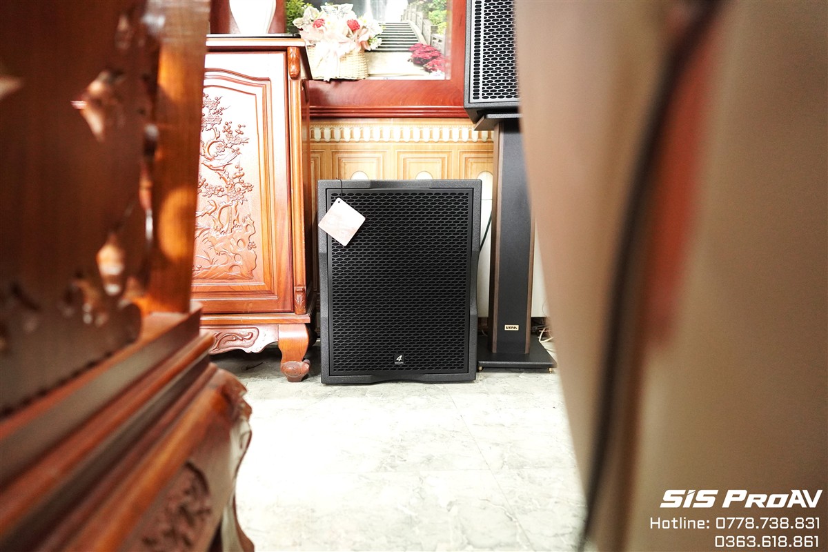Để hệ thống karaoke trở nên sống động và mạnh mẽ hơn, SIS ProAV đã trang bị thêm loa subwoofer 4Acoustic PCS-115BS. Đây là thiết bị giúp bổ sung dải âm trầm sâu và chắc, mang lại cảm giác âm nhạc đầy đặn và bùng nổ.