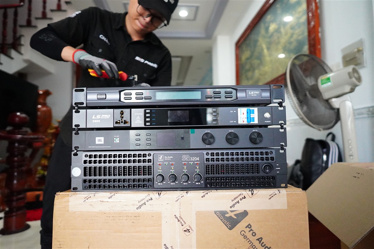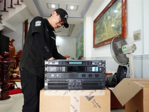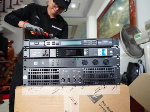 - Lắp đặt amplifier và vang số vào tủ rack