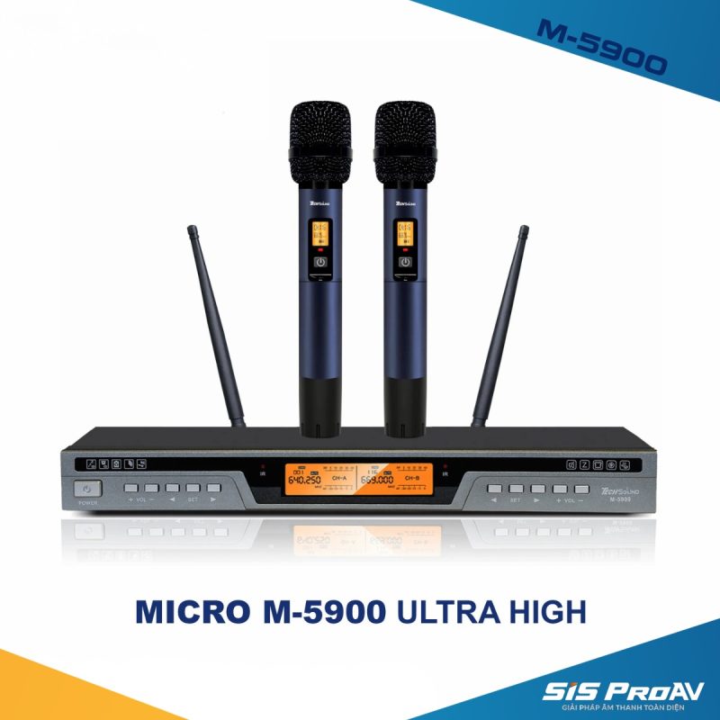 Micro M-5900 được trang bị công nghệ UHF với dãi tần640~690MHz và tổng cộng 200 kênh kèm đó là Anten của micro được tích hợp chip giúp khả năng phát sóng trở nên được xa hơn lên đến 100mét. Được tích hợp tính năng cảm biến tự ngắt khi không sử dụng để tiết kiệm pin, cùng khả năng tái tạo giọng hát dày tiếng, rõ ràng. M-5900 là trợ thủ đắc lực cho giọng hát của bạn.