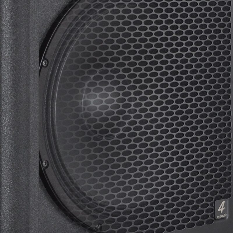 Loa 4Acoustic HCS 115F được trang bị củ loa bass 15 inch, mang đến dải trầm sâu và mạnh mẽ. Điều này giúp loa thể hiện xuất sắc ở các tần số thấp, tạo cảm giác âm trầm đầy nội lực và lan tỏa. Dải âm trầm của HCS 115F không chỉ có độ sâu mà còn rất chi tiết, giúp âm thanh không bị méo khi phát ở mức âm lượng lớn.