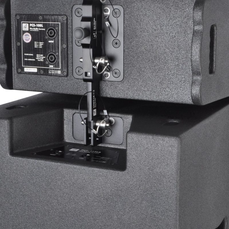 - PCS 108L là phiên bản nhỏ nhất trong series có kích thước tiện dụng với : 24,3 x 43 x 42,5cm cùng trọng lượng chỉ 16kg mỗi chiếc. Được thiết kế với cấu trúc dạng treo hoặc đặt đứng trên subwoofer nhờ phụ kiện Flyware được nhà hãng 4Acoustic sản xuất riêng phù hợp cho từng sản phẩm, với chất liệu được làm bằng các thành phần nhôm chất lượng cao, cực kỳ đàn hồi và chắc chắn.