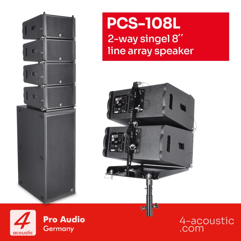 Loa 4Acoustic PCS 108L là sản phẩm loa linearray nhỏ gọn, chuyên nghiệp với công suất 700W cho mỗi modun. Một lựa chọn cực phù hợp cho dàn âm thanh chuyên nghiệp được ứng dụng trong các môi trường như : Acoustic Bar, phòng trà liveband, mô hình nightclub, beer garden với diện tích vừa phải từ 50m2 – 100m2. Lợi thế với sự nhỏ gọn và thông số ấn tượng, với PCS-108L chúng ta có thể ghép đến 12 modun trên mỗi khung treo do hãng sản xuất. Công nghệ âm thanh chuyên nghiệp vượt trội đến từ Đức, Loa Linearray 4Acoustic PCS-108L sẽ mang tới cho bạn những trải nghiệm thú vị về sự chuyên nghiệp trong một hệ thống âm thanh. Hãy cùng SIS ProAV khám phá những điều tuyệt vời mà dòng loa này mang lại nhé.