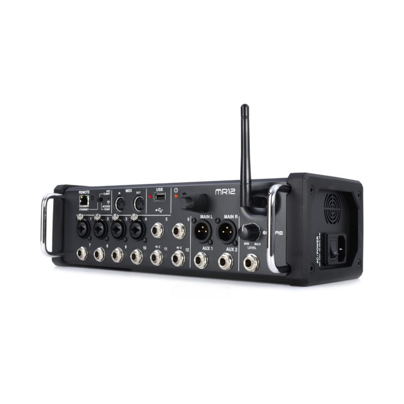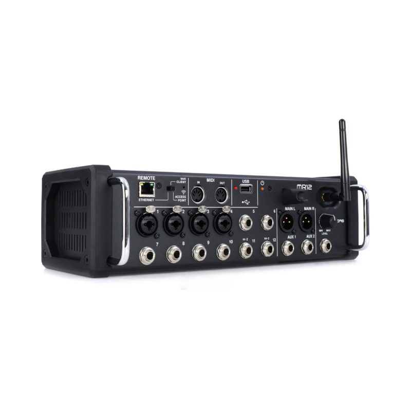 rên bo mạch, bạn sẽ tìm thấy bốn bộ tiền khuếch đại Midas Pro huyền thoại, chức năng trộn tự động và xử lý hiệu ứng DSP tuyệt vời. Ngoài I/O tương tự linh hoạt, MR12 còn có máy ghi âm kỹ thuật số âm thanh nổi, điều khiển MIDI và bộ định tuyến Wi-Fi độc lập để điều khiển không dây qua iOS, Android và máy tính.